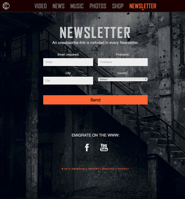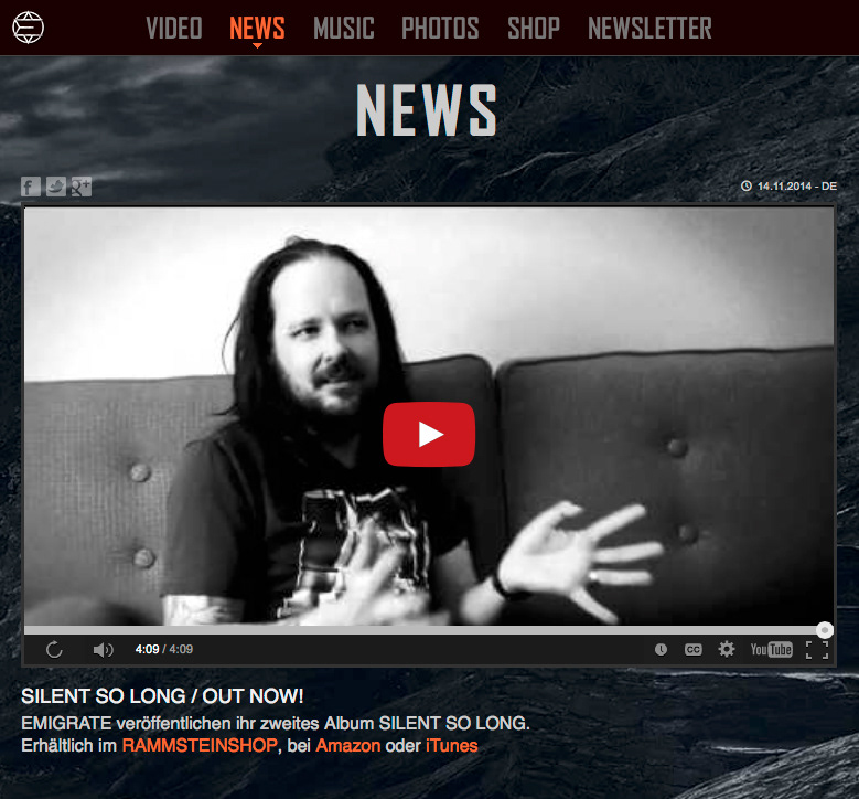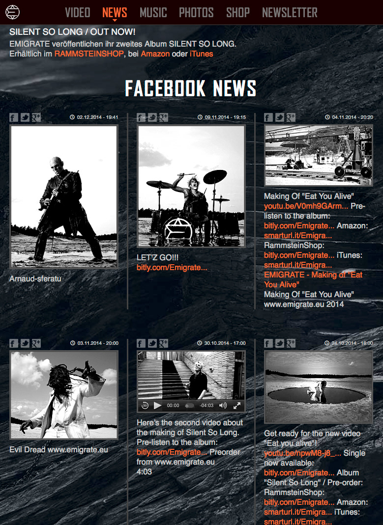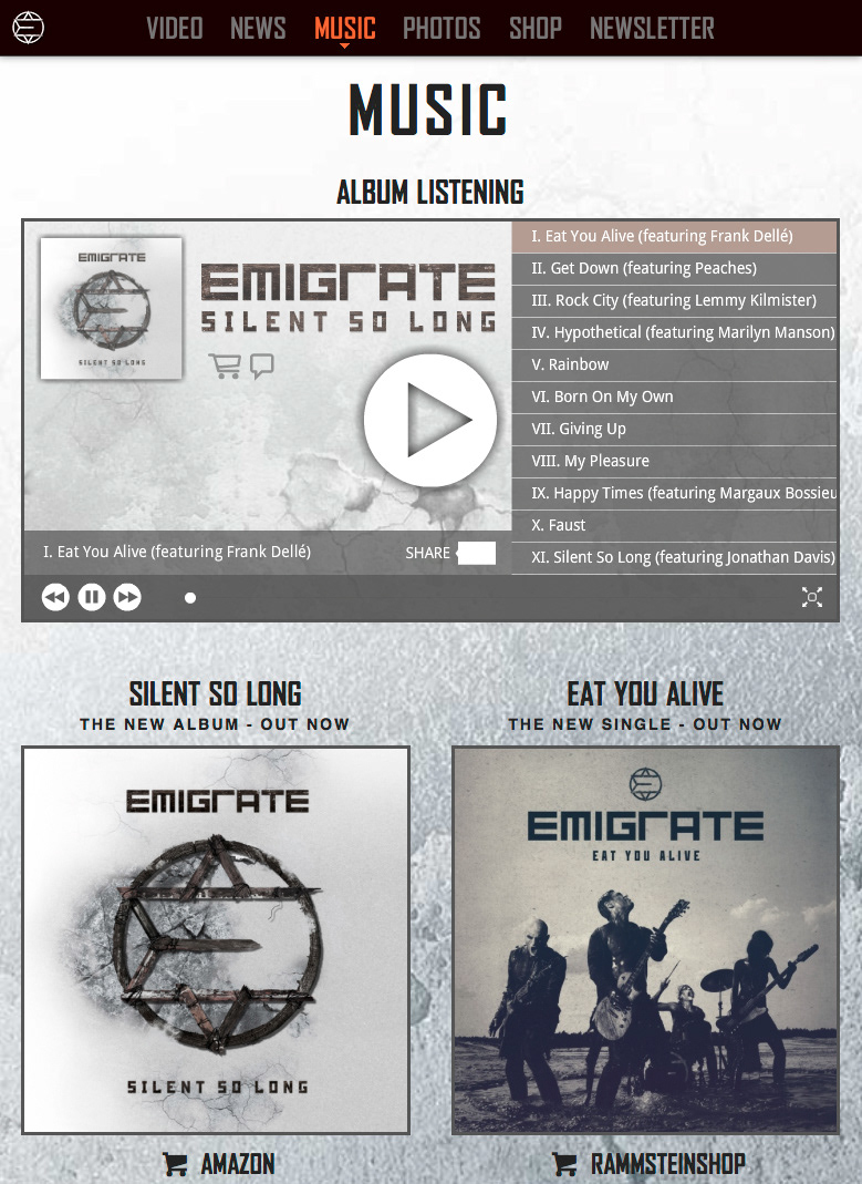 Emigrate website skinning for the new Album Silent So Long The website can be visited here: http://emigrate.eu